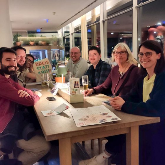 Einmal im Monat veranstalten wir einen Netzwerkabend, bei dem wir uns in gemütlicher Runde über Neuigkeiten und Praxisbeispiele rund um Cradle to Cradle und Circular Economy austauschen. Gelegentlich gibt es Themenabende, vom „Kreislauf des Fahrrads“ bis zu „Großkonzerte“.