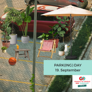 Dieses Jahr ist der Park(ing) Day am 19. September und wir haben als Regionalgruppe Cradle to Cradle Köln die Parkfläche auf der Brabanter Straße/Ecke Maastrichter Straße ausgesucht, weil sie in der Hitzezone in Köln liegt und zudem von vielen Passant*innen gesehen werden kann. Wir möchten dort über unser Konzept der Kreislaufwirtschaft informieren und mit den Bürger*innen der Stadt in Kontakt kommen, um die Möglichkeiten von Flächenumnutzungen zu diskutieren und aufzuzeigen. Konkret bedeutet das, dass wir auf der freigewordenen Fläche einen Pavillon, Stühle, Pflanzen und Tische aufbauen und dort passierende Menschen zum Gespräch und Spielen einladen.